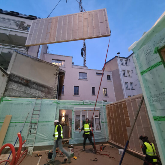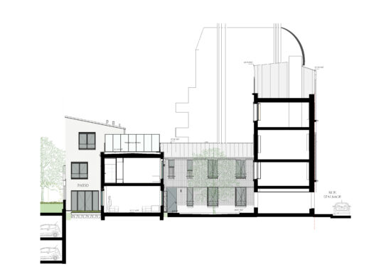 Les gabarits sont contrastes (R+4/R+5 cotes rue, et R+2/R+3 en cœur d'ilot) mais les retraits et épannelages divers, ainsi que l'organisation des logements, permettent de garantir l'ensoleillement, l'éclairage naturel et l’intimité de chacun.